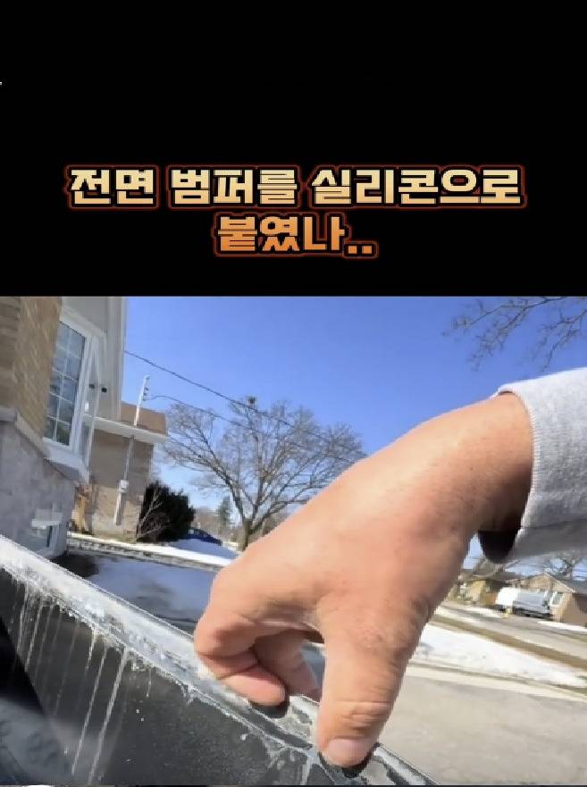정확한 건 아닐 수 있지만, 일단 흰색 접착제가 범퍼에 남아있는 자국을 보면 글루건이나 실리콘으로 대충 붙인 것처럼 추정된다.