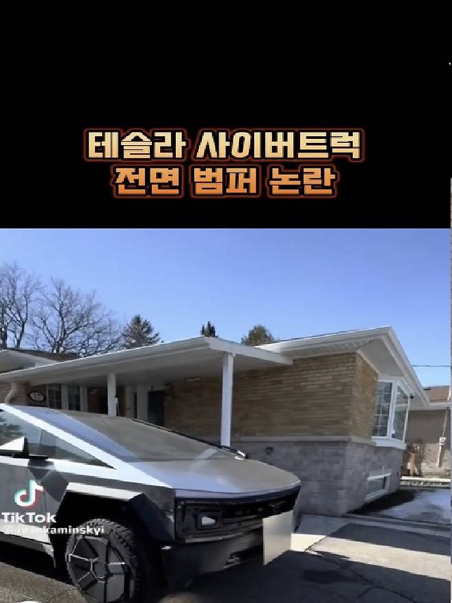 그런데 사고 이후 사이버트럭의 전면 범퍼가 떨어져 나갔다. 정확히 말하면 차체 왼쪽은 범퍼가 붙어있는데, 오른쪽만 떨어져 너덜너덜하게 붙어있는 모습이다.