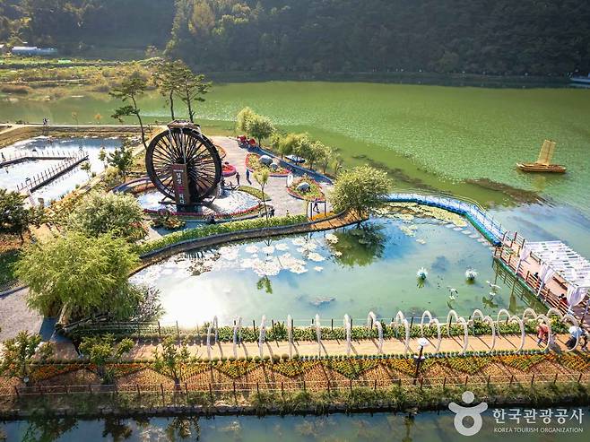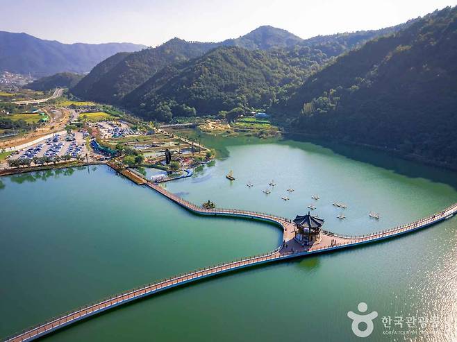 호수를 따라 이어진 둘레길 데크는 누구나 쉽게 걸을 수 있는 코스로, 중간중간 포토존과 쉼터가 잘 갖춰져 있어 산책이나 데이트 코스로 제격입니다. 특히 백년수중다리는 물 위를 걷는 듯한 이색적인 체험을 선사하며, 잔잔한 호수 풍경과 어우러져 감성적인 분위기를 연출합니다.
