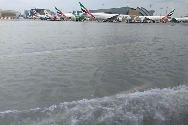 이로 인해 세계에서 붐비는 공항 중의 하나인 두바이 국제공항(DXB)의 활주로는 물에 잠겼고, 홍수로 공항으로 이어지는 도로도 막혔습니다.