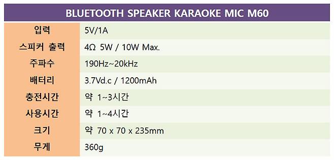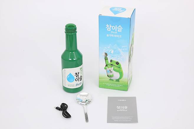 참이슬 숟가락 블루투스 마이크 M60은 참이슬 후레쉬 소주병과 동일한 크기와 무게에 노래방 마이크 기능을 내장해 친숙한 느낌을 전해주며, 모형 숟가락까지 제공되어서 더욱 재미있는 분위기를 내준다. 여기에 5단계 조절이 가능한 에코 기능으로 노래를 부르는 재미를 더해주며, 반주용 음원이 아닌 일반 음원에서 가수 목소리를 제거해주는 MR 기능까지 갖춰서 더욱 편리하게 즐길 수 있다. 여기에 컬러 소주잔과 LED 발광 스티커까지 제공해 술자리의 분위기를 책임지고 업그레이드시킬 수 있을 것으로 기대된다.