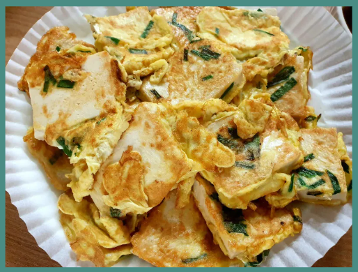 ✔️팬에 기름을 두르고 두부를 넣고, 계란물을 끼얹어 앞뒤로 노릇하게 구워주면 끝!