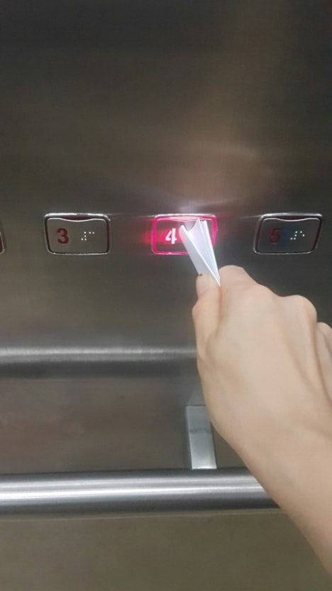 많은 사람들은 버튼을 누를 때만 주의를 기울인다. 소독 후 손가락 끝만 닿게 누르거나, 키나 팔꿈치로 누르는 경우도 있지만, 버튼 주변 틈에 손이 스치는 건 인지하지 못하는 경우가 많다.