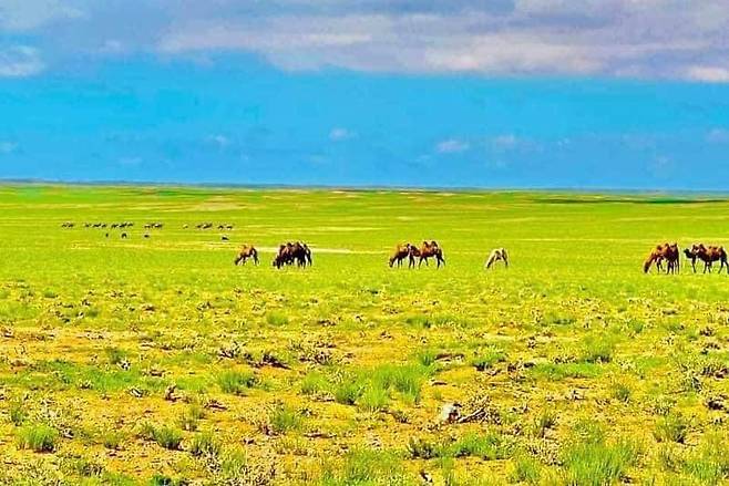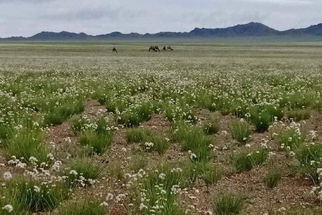 비가 많이 내리자 고비 사막에 겨우겨우 숨만 붙이고 있던 풀들과 야생화들이 고비 사막을 초원으로 만들었습니다.