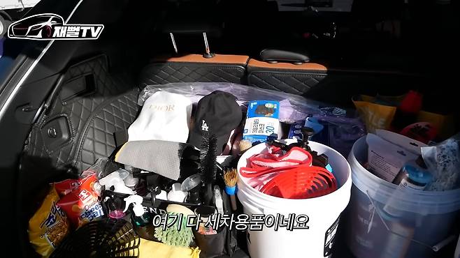 그리고 차주님이 진짜 차에 너무 진심인 게 느껴지는 게 트렁크에 진짜 다 세차 용품밖에 없어요.
