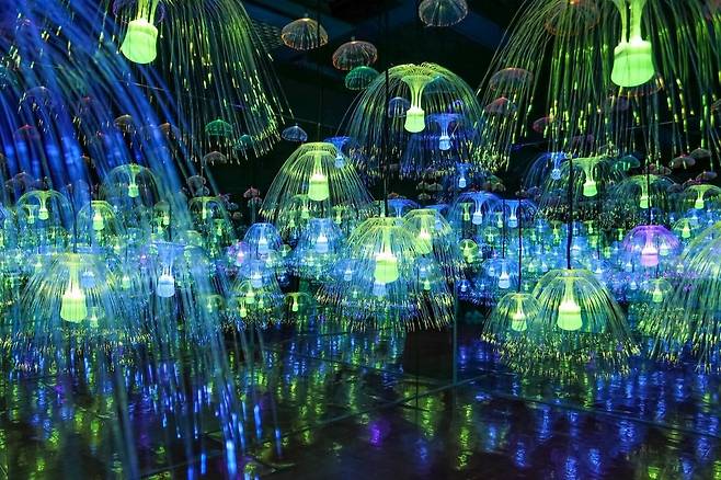 아르떼뮤지엄은 몰입형 미디어아트를 체험할 수 있는 장소로, 예전 스피커 제조공장이었던 건물을 리모델링하여 약 1,400평, 높이 10m의 벽을 스크린으로 활용한 미디어아트의 세계를 맛볼 수 있죠.