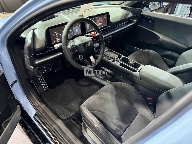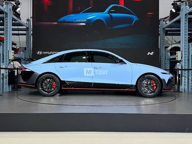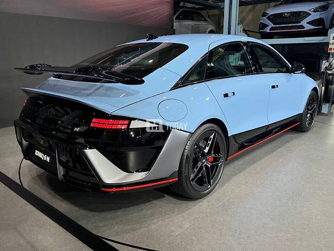 또 넓은 펜더 디자인으로 고성능 세단에 어울리는 낮고 당당한 자세를 갖췄으며 아이오닉 6 N 전용 신규 외장 색상 '퍼포먼스 블루 펄'을 적용해 역동적인 이미지를 빛의 각도에 따라 정교하고 입체적으로 표현했다.