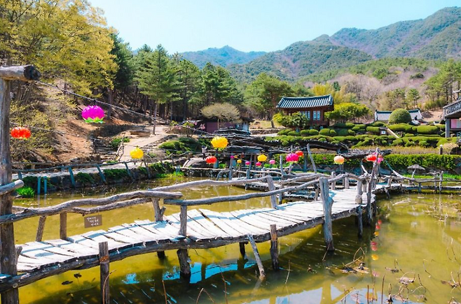 연꽃 정원 수선사 하면 빠질 수 없는 명물, 바로 연못입니다.스님이 직접 가꾼 정원 안에 자리한 연못엔 여름이면 연잎과 연꽃이 화사하게 피어납니다.연못 위 통나무길은 인증샷 필수 코스!여기에 백일홍과 소나무, 잣나무 숲이 어우러져 여름의 산사를 더욱 아름답게 만듭니다.