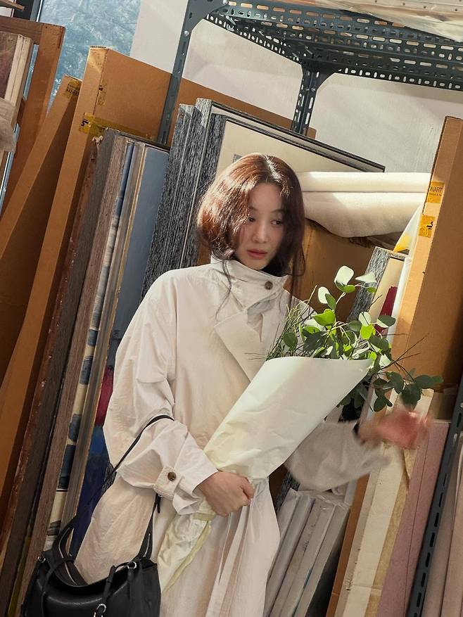 정려원이 햇살 가득한 작업실에서 꽃다발을 품에 안고 영화의 한 장면 같은 근황을 공개해 팬들의 감탄을 자아냈어요.