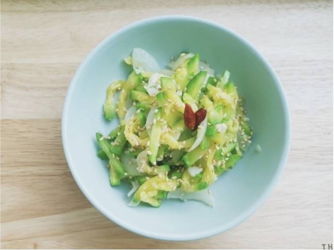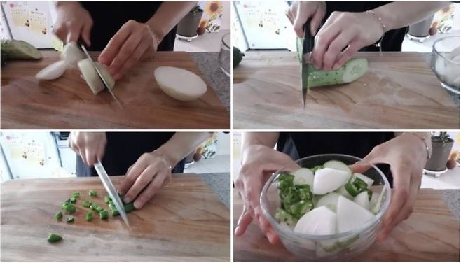 1. 양파와 오이, 청양고추를 먹기 좋은 크기로 썰어주세요