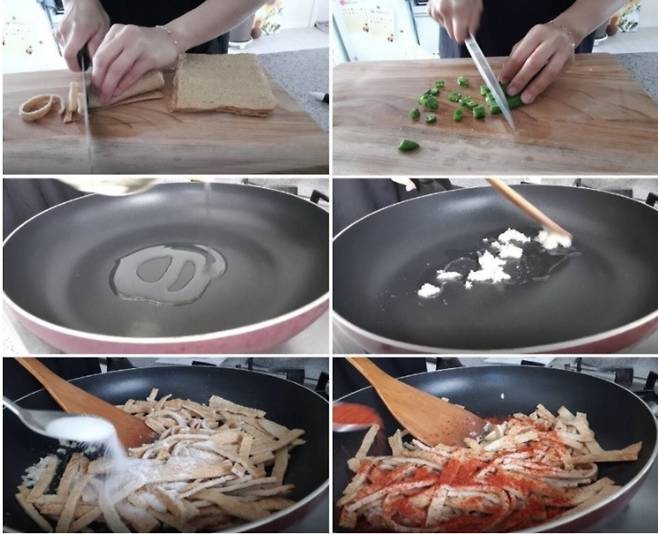 2. 어묵과 청양고추를 먹기 좋은 크기로 썰어주세요
