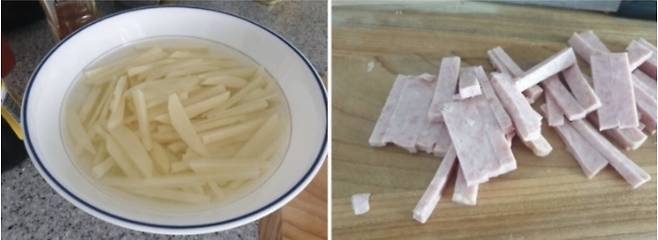 2. 스팸도 감자와 동일한 크기로 썰어주세요