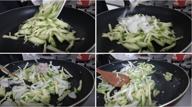 1. 애호박과 양파를 채 썰어 준비합니다.