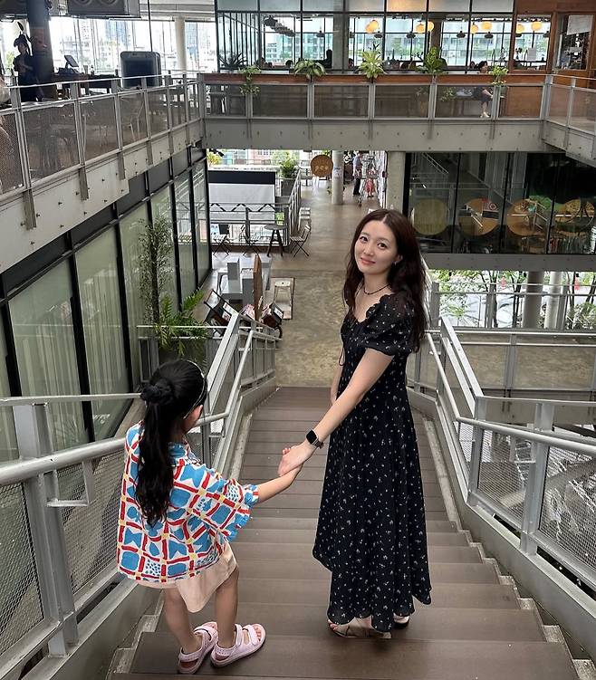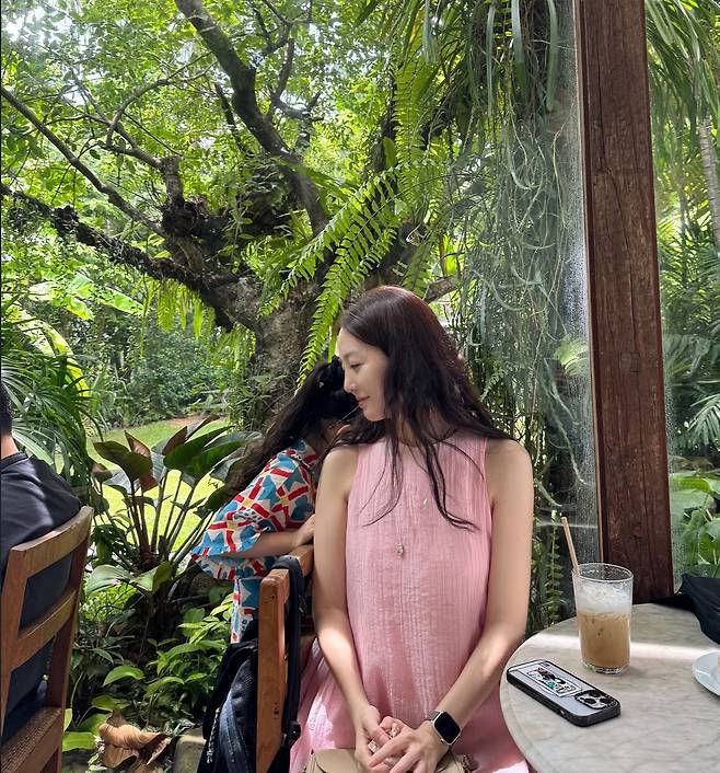 긴 생머리를 자연스럽게 늘어뜨린 스타일이