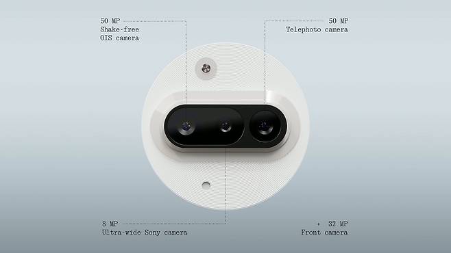 카메라 스펙은 트리플 렌즈 구성에서 듀얼 렌즈 구성으로 변경했는데 다른 스펙을 올린 대신 카메라 스펙에서 선택과 집중을 한 것으로 보인다. 메인 카메라를 6,400만 화소에서 5,000만 화소로 내린 대신 더 큰 센서와 더 넓은 조리개를 넣어 저조도 환경에서의 촬영 품질을 높였다.