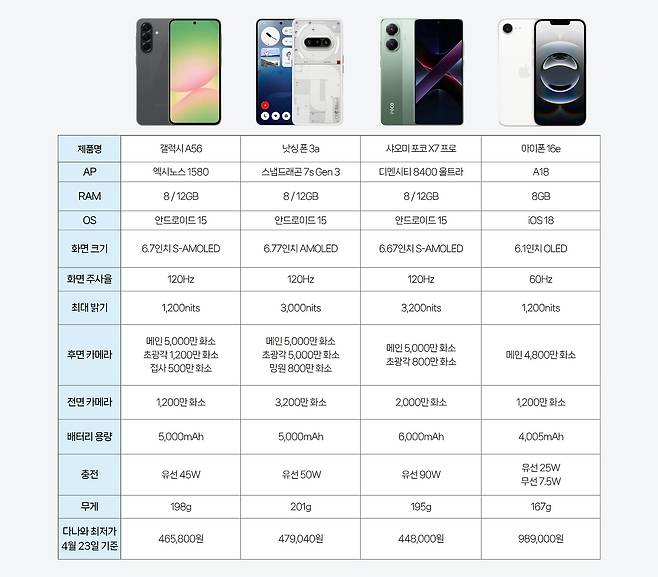 평소에 플래그십 스마트폰으로 유튜브, 카카오톡, 인스타그램 정도만 사용한다면 오히려 이번 기회에 가성비 좋은 보급형 스마트폰으로 갈아타는 건 어떨까. 최근에 출시된 가성비 보급형 스마트폰 신형 4종을 비교해보며 나에게 맞는 스마트폰이 무엇인지 알아보자.