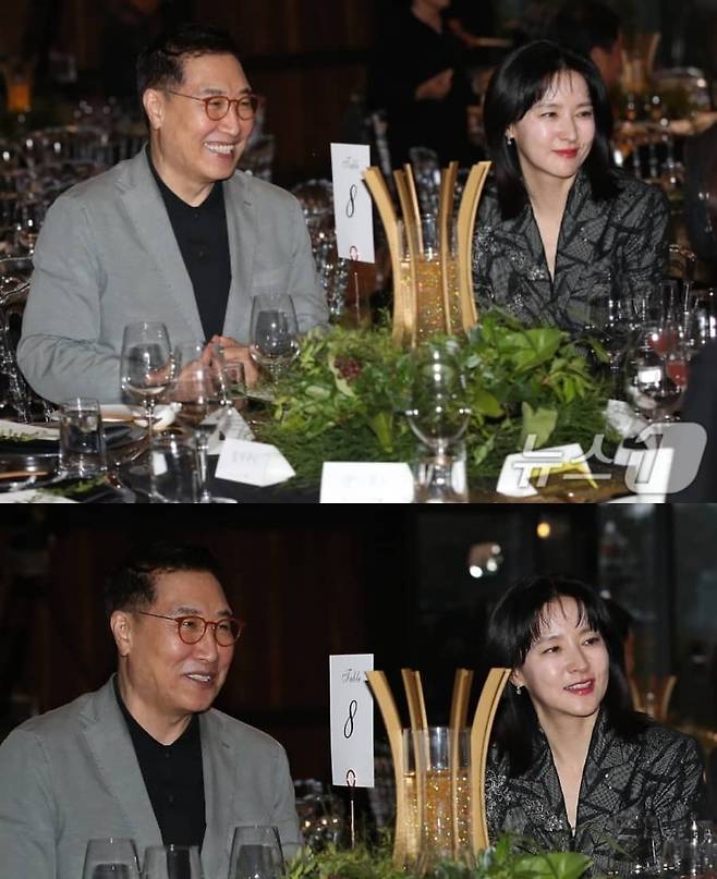 두 사람은 테이블에 나란히 앉아 귓속말을 주고받았고, 팬과 기념 촬영을 하는 이영애를 흐뭇하게 바라보는 정 전 회장의 모습이 포착되기도 했습니다.