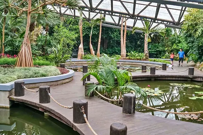 옥외 정원에 위치한 ‘한국정원’은 창덕궁 후원을 모델로 조성돼 한국의 정취를 전한다. 연못과 정자, 석탑이 어우러져 전통적인 아름다움을 느낄 수 있다. 실내 온실에는 희귀 고사리 전시가 마련돼 있어, 용비늘 고사리나 십자고사리처럼 생소한 식물도 만날 수 있다.