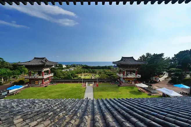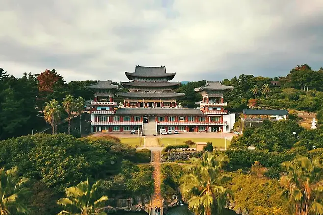 세 번째 목적지는 서귀포의 대표 사찰 약천사다. 이어도로에 위치한 이 절은 동양 최대 규모의 법당을 보유하고 있는 것으로 알려져 있다. 지상 5층, 지하 1층의 ‘대적광전’은 약 29m 높이로, 제주에서 보기 드문 스케일을 자랑한다.