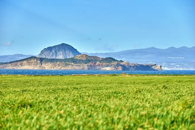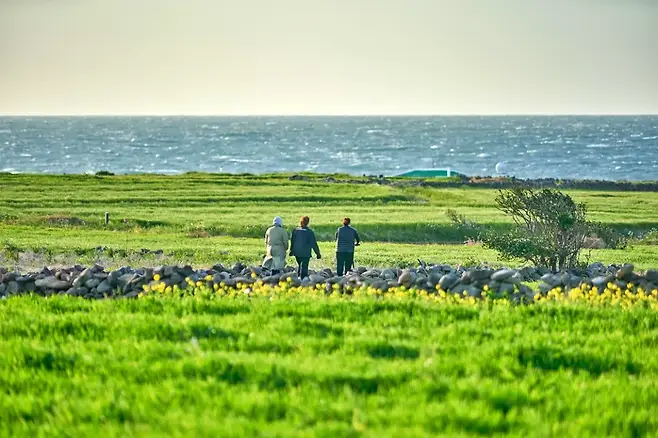 서귀포시 대정읍 운진항에서 배를 타고 단 10분. 바다 건너 펼쳐지는 초록 들판은 가파도의 청보리밭이다. 매년 4월이면 약 18만 평 규모의 밭이 제주 향토 품종 청보리로 가득 메워진다. 다른 지역보다 더 높고 진한 녹빛을 자랑해, 바람이 불면 초록 파도가 일렁이는 장관이 펼쳐진다.