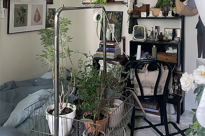 요즘 꽂힌 스테인리스 선반은 깔끔하고 슬림 하지만 힙한 감성이 느껴져서 우드 일색의 방에 몇 칸 달아줬어요. 아닐 것 같지만 우드와 스테인리스가 꽤나 잘 어울리거든요.