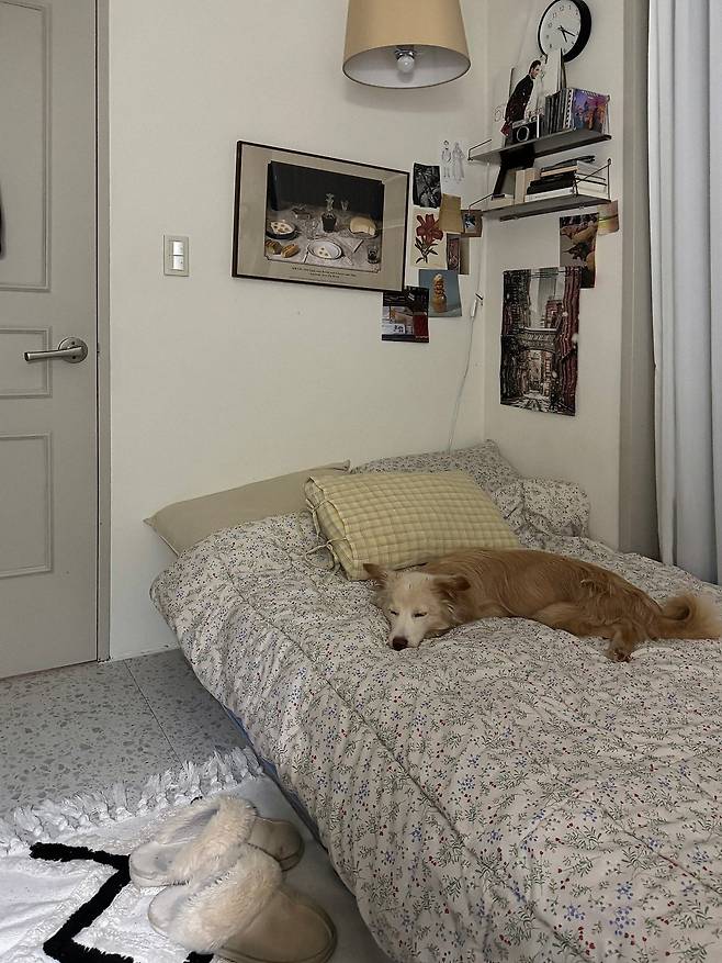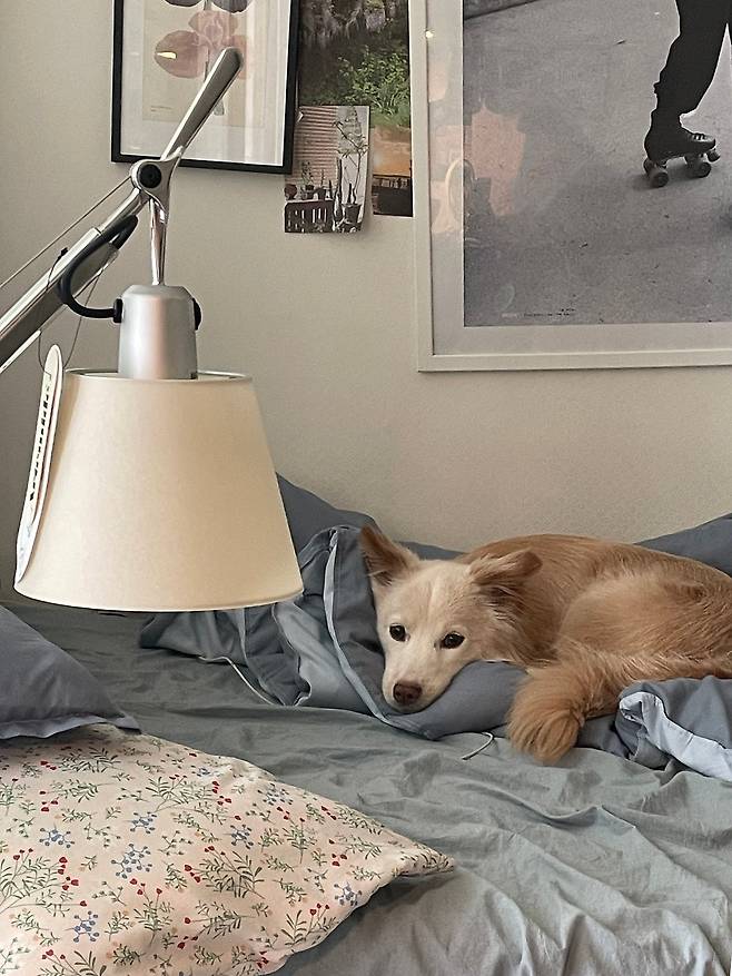 저보다 침대에서 보내는 시간이 훨씬 긴 우리 강아지. 저는 늘 자기 전에 강아지랑 함께 침대에 누워서 교감하는 시간이 가장 행복해요.