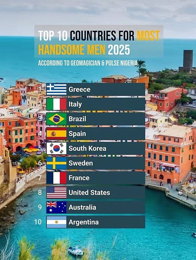 2025년 가장 잘생긴 남자가 많은 나라 TOP 10