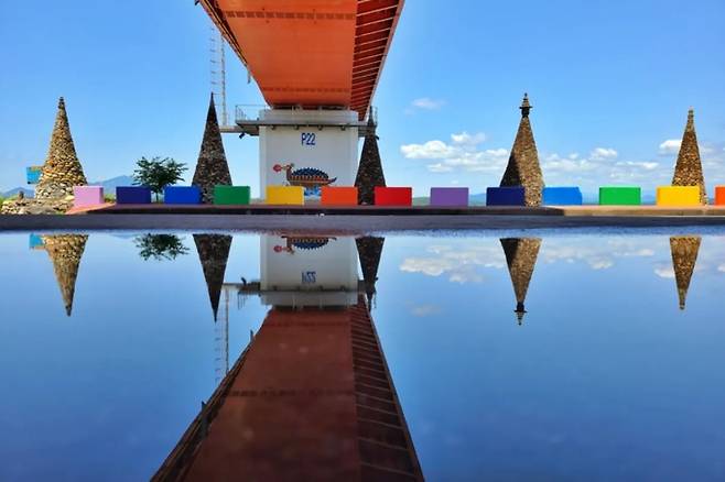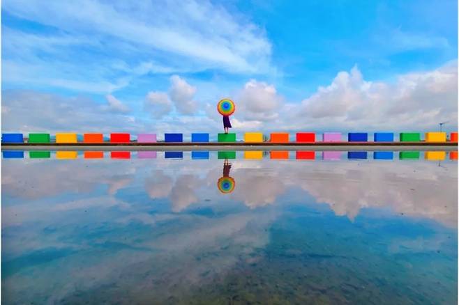 사천 무지개 해안도로를 방문하면 도로를 따라 조성된 다양한 포토존도 함께 즐길 수 있다. 무지갯빛 벤치, 형형색색 파라솔, 그리고 자연을 배경 삼아 사진을 찍을 수 있는 특별한 공간들이 곳곳에 마련돼 있다. 특히 선셋 타임에는 붉게 물든 하늘과 바다가 만들어내는 풍경이 극적인 아름다움을 더한다.