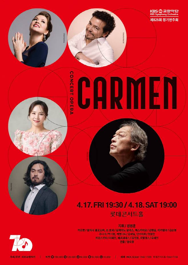 KBS교향악단이 오는 17~18일 서울 송파구 롯데콘서트홀에서 제825회 정기연주회로 조르주 비제의 걸작 오페라 '카르멘' 콘서트 버전을 선보인다고 1일 밝혔다.
