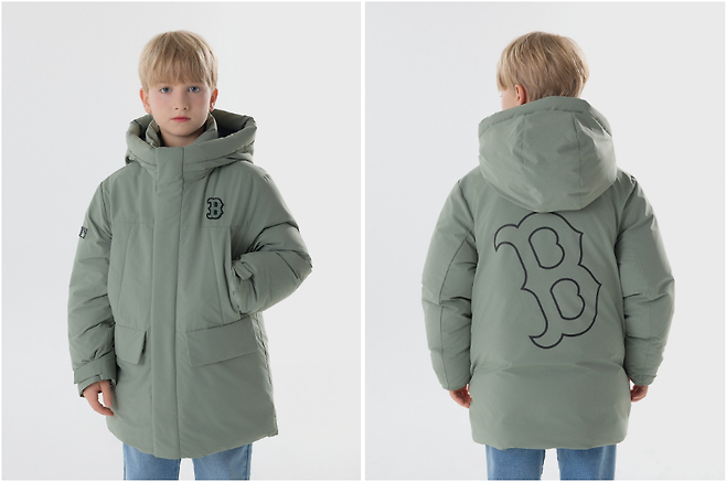 미드 기장의 MLB키즈 패딩,