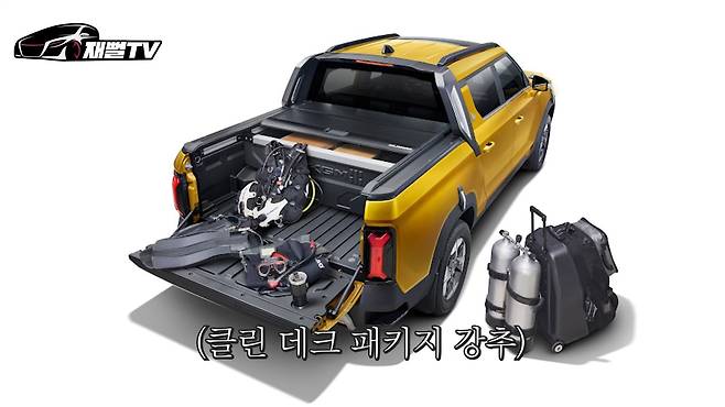 무쏘 EV의 데크는 실용성을 극대화했다. '클린데크 패키지'는 비나 눈으로부터 짐을 보호할 수 있는 옵션으로, 픽업트럭 구매자들에게 가장 인기 있는 선택이 될 것으로 보인다. 데크 내부에는 물건을 고정할 수 있는 시스템이 마련되어 있어 짐의 이동을 방지할 수 있다.