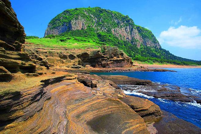 용머리해안은 웅장한 바다 절벽과 함께 제주의 독특한 해안 풍경을 자랑하는 명소입니다.