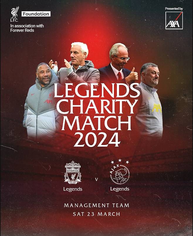 리버풀은 현지시간으로 오는 3월 23일 홈구장 안필드에서 리버풀 레전드 선수들로 구성된 팀과 네덜란드 에레디비지에 아약스 레전드 선수들로 구성된 팀의 자선 맞대결을 개최할 예정이다. 이 경기에서 리버풀 레전드를 이끌 감독은 에릭손으로 확정됐다.