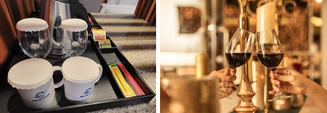 분위기를 위해 와인글라스나 샴페인 글라스가 필요하다면 룸서비스에 요청해 보세요. 보통 4-6개 정도는 무리없이 여러분의 객실로 가져다 주실겁니다.
