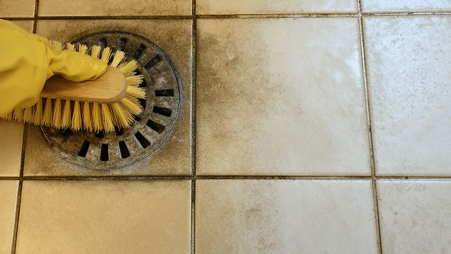 별도의 세제나 장비 없이, 화장실 바닥에 소금을 뿌린 뒤 솔로 문질러주기만 하면 된다. 이후 미지근한 물로 헹궈주면 타일 사이의 묵은 때가 눈에 띄게 제거된다.