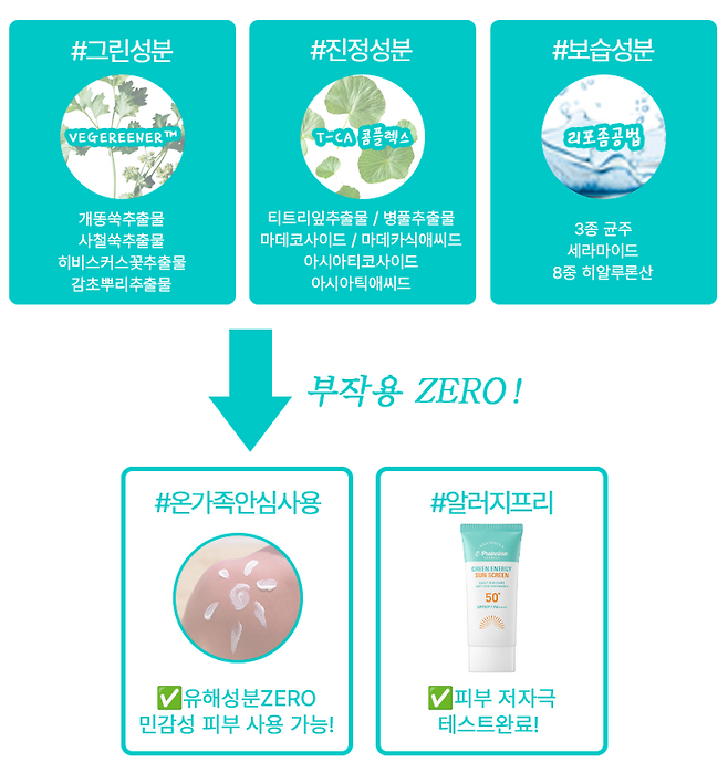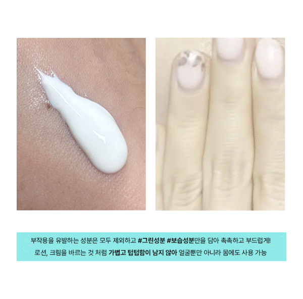 그린성분 보습성분만을 담아 피부에 순하게 작용한다.