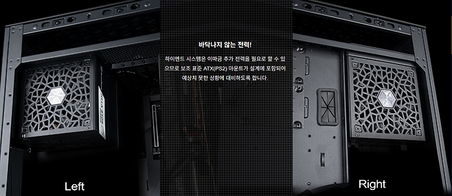 또한, ALTA F2는 표준 ATX 파워서플라이 두 개를 동시에 장착할 수 있는 구조다. 기본적인 PS2(ATX) 파워 외에, 보조 전원용 PSU를 추가로 설치할 수 있다. 이는 갑작스러운 전력 수요에도 대비할 수 있다는 뜻이다. 고사양 워크스테이션으로 구성 시 도움이 될 수 있는 기능이다.