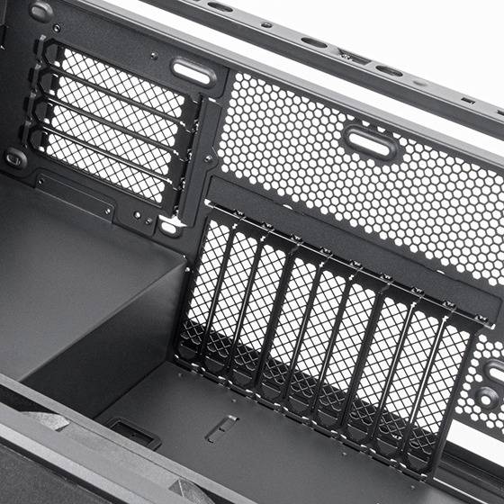 다만, 비싼 이유는 분명히 있다. 굴뚝 효과 설계 PC 케이스 중 가장 성능이 좋은 제품군이다. 고성능 180mm Air Penetrator 팬 3개 기본 장착, 대형 메인보드와 듀얼 ATX 파워서플라이 지원, 최대 560mm 라디에이터 및 최대 9개의 팬 장착, 11.3° 기울어진 PCI 슬롯으로 열 간섭 최소화, 9+4+4 확장 슬롯 제공—이 모든 것을 갖춘 케이스는 드물다 못해 유일하다.