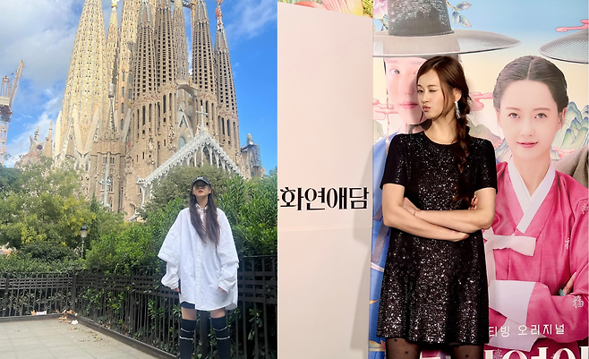 바르셀로나의 상징적인 건축물 사그라다 파밀리아 앞에서 고아라가 여유로운 오버사이즈 화이트 셔츠 룩을 선보이고 있다. 무릎 위 길이의 셔츠는 편안함과 스타일을 동시에 추구하는 여행 패션의 정석을 보여주며, 검정 무릎 양말과 흰색 스니커즈로 캐주얼한 느낌을 더하고 있다. 특히 모자와 함께 연출한 심플한 스타일링은 유럽 여행지에서의 실용적이면서도 세련된 패션 감각을 엿볼 수 있게 한다.