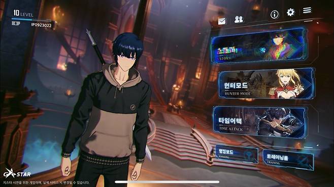 시연 버전에서는 성진우의 성장을 따라가는 ‘스토리 모드’와 헌터 캐릭터를 조작해 플레이하는 ‘헌터 모드’, 그리고 최적의 스킬/장비 배치와 컨트롤 실력으로 기록 단축을 겨루는 ‘타임 어택’의 세 가지 모드를 즐길 수 있었습니다. ‘스토리 모드’는 풀 한국어 더빙에 액션 애니메이션을 보는 듯한 시네마틱 영상이 눈길을 사로 잡았고, ‘헌터 모드’에서는 태그를 통해 다양한 캐릭터를 다루는 등 다른 모드와 차별화된 액션을 즐길 수 있어서 흥미로웠지만, 킹오브 파이터 올스타를 즐기던 입장에서는 역시 ‘타임 어택’이 가장 재미있었습니다.