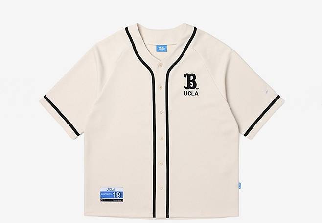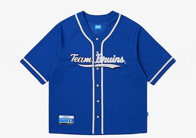 'UCLA' 베이스볼 카디건은 야구 유니폼을 포티브로 탄탄한 소재감과 유니크한 패치워크가 더해져 야구장 패션 응원룩 또는 일상 속 스타일리시한 블록코어룩으로 인기를 끌고 있다.