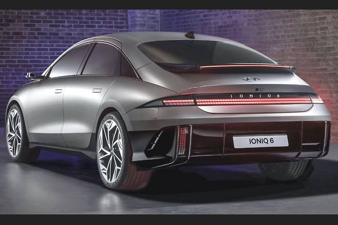 아이오닉6는 플랫폼을 공유하는 현대차 아이오닉5와 비교해 전장은 길고 전폭은 좁다. 전고는 110mm 낮다. 아이오닉6의 외관은 감각적인 곡선들로 완성된 유선형 실루엣을 통해 바람 저항이 최소화됐다. 아이오닉6의 공기저항계수는 0.21Cd로 벤츠 EQS(0.20) 수준이다.