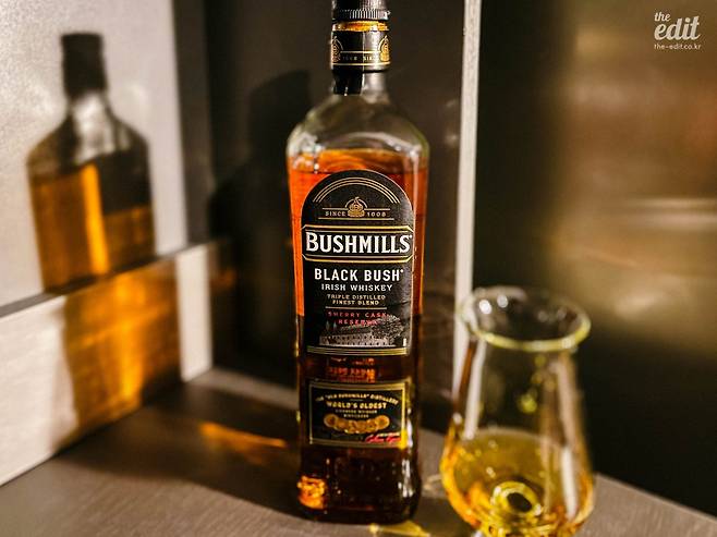 이렇게 만들어진 스피릿을 오크통에 숙성하고 나면 비로소 위스키가 된다. 대부분의 스카치, 아이리시 위스키는 이전에 다른 술을 한 번 이상 담았던 오크통에서 숙성한다. 숙성 과정에서 오크 나무 특유의 풍미뿐만 아니라 이전에 담았던 술의 풍미까지 더해 복합적인 풍미를 만들기 위함이다. 부쉬밀 블랙 부쉬도 글렌드로낙 12년처럼 셰리 캐스크에 숙성한 원액이 포함된 위스키다.