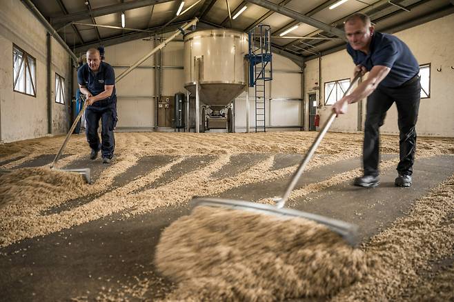 [전통 방식인 플로어 몰팅을 고집한다. 출처= 킬호만 위스키 증류소 홈페이지]