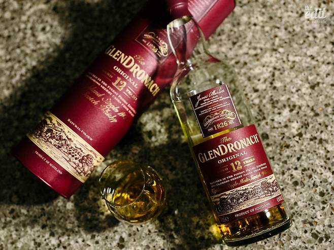 최근 들어 이 셰리 캐스크 숙성 위스키가 큰 인기를 끌고 있는데, 그중에서도 글렌드로낙은 맥캘란, 글렌파클라스와 함께 이른바 셰리 삼대장으로 꼽히는 대표적인 셰리 캐스크 숙성 위스키다. 그리고 동시에 글렌드로낙은 싱글몰트 스카치 위스키이기도 하다. 스코틀랜드에 위치한 글렌드로낙이라는 하나의 증류소에서 다른 곡물이 아닌 몰트로만 만든 위스키라는 뜻이다. 이런 싱글몰트 위스키들은 증류소마다 고유한 개성을 보여준다. 글렌드로낙 12년은 글렌드로낙 증류소의 엔트리급 위스키로 화사한 향, 건포도 등 말린 과일, 견과류의 풍미, 적당한 꾸덕함, 스파이시한 피니시까지 풍부하고 좋은 밸런스를 가졌다. 자기 전에 마시면 하루를 향긋하게 마무리할 수 있다.