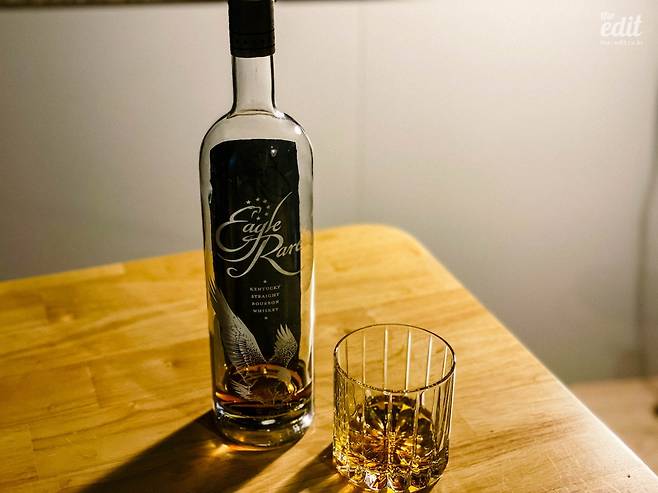 이글레어 10년은 버번위스키다. 버번위스키는 간단히 말해 미국에서 옥수수를 주재료로 만든 위스키다. 꿀, 바닐라, 카라멜이 연상되는 단맛, 스파이시함, 아세톤이 연상되는 다소 거친 향이 버번위스키의 대표적인 풍미다. 카우보이나 마피아가 연상되는 하드보일드한 이미지로 묘사되는 경우도 많다.