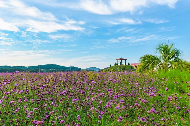 "보라색 꽃밭에 야자수가?" 버베나꽃 제대로 즐길 수 있는 곳