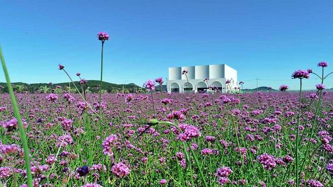 충남 태안에는 아직 많이 알려지지 않은 보랏빛 명소가 있다. 태안읍 반곡리의 ‘가든스퀘어’는 여름이면 버베나꽃이 흐드러지게 피어나는 숨은 꽃 명소다. 특히 7월과 8월, 보랏빛 꽃과 푸른 하늘, 흰 구름이 만들어내는 조화는 인생샷을 남기기에 완벽한 풍경을 선사한다.