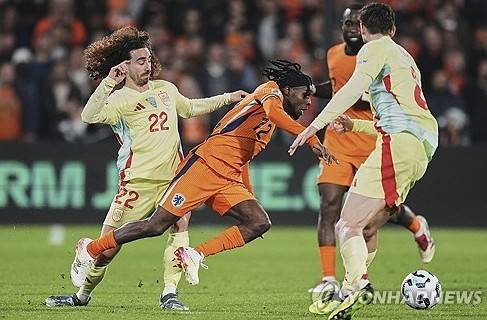 스페인은 지난 21일(한국시간) 네덜란드 로테르담에 있는 스타디온 페예노르트에서 열린 2024-2025 유럽축구연맹(UEFA) 네이션스리그 8강 1차전 네덜란드와 맞대결에서 2-2 무승부를 기록했다.