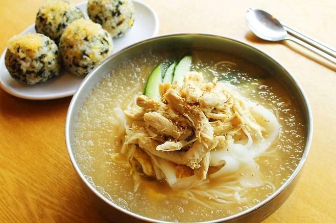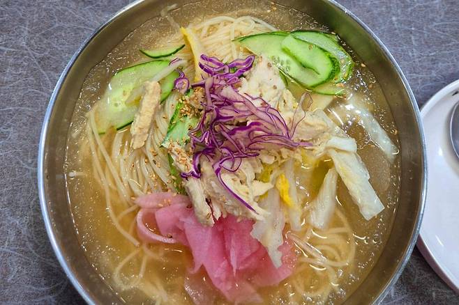 살얼음이 뜬 초계국수와 보쌈 고기를 함께 먹으면 여름철 더위를 잊게 해줍니다. 자극적이지 않고 시원한 육수가 특징이며, 가족 단위 방문객들에게 인기가 많습니다.